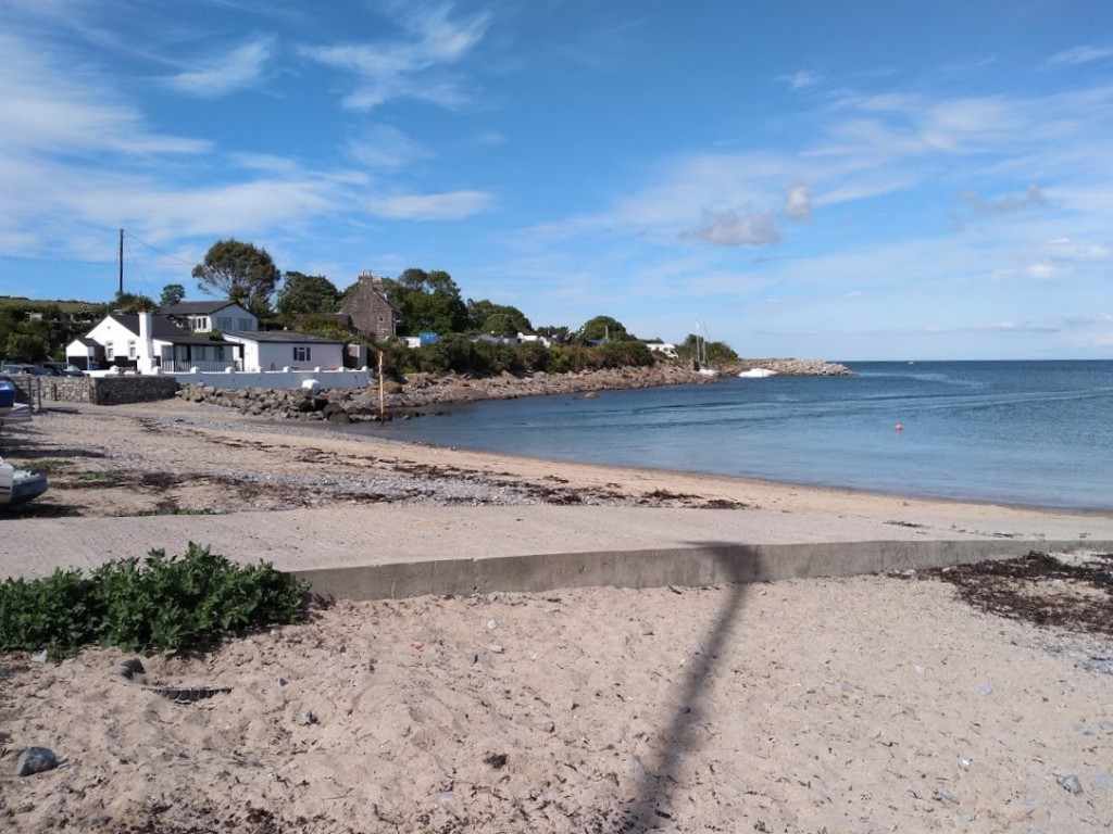 This lovely sandy beach is sheltered by cliffs. At low tide a large sandy beach is exposed, at high tide it becomes a small sheltered cove and is perfect if your dogs love to swim.